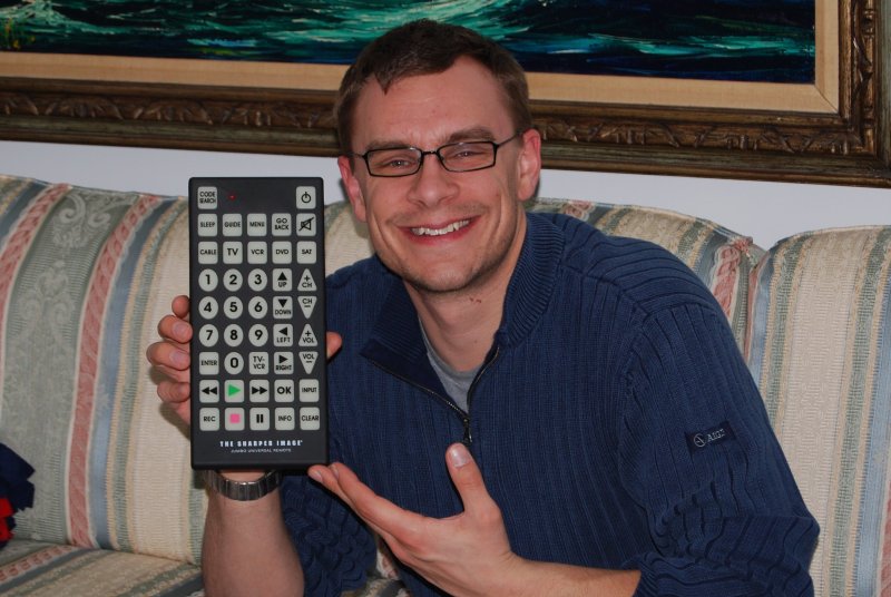 I have to ring in to say Merry Christmas to the entire 'interweb'. Not just because I love Christmas so much, but more because I like Christmas gifts. And to celebrate, I am posting my Gram's brand new, futuristic, 21st century, JUMBO Universal remote. (Notice how I spelled JUMBO in all caps). This has to be the best gift ever... We can thank Dave for delivering it on behalf of Santa this year. Sure, this is a ridiculously large remote, but it will enable my Gram to control the TV with cat-like reflex and eagle-like precision. Once more, this remote (by my prediction) will revolutionize the electronics industry trends for 2008. Kind of like retro style, mark my words we'll see things like giant cell phone, fat, heavy laptops, even corded headsets. Yes, that's my prediction... So take a close look at this feat of ingenuity and thank Dave for opening the doors to the common consumer. Total control is directly ahead of us!